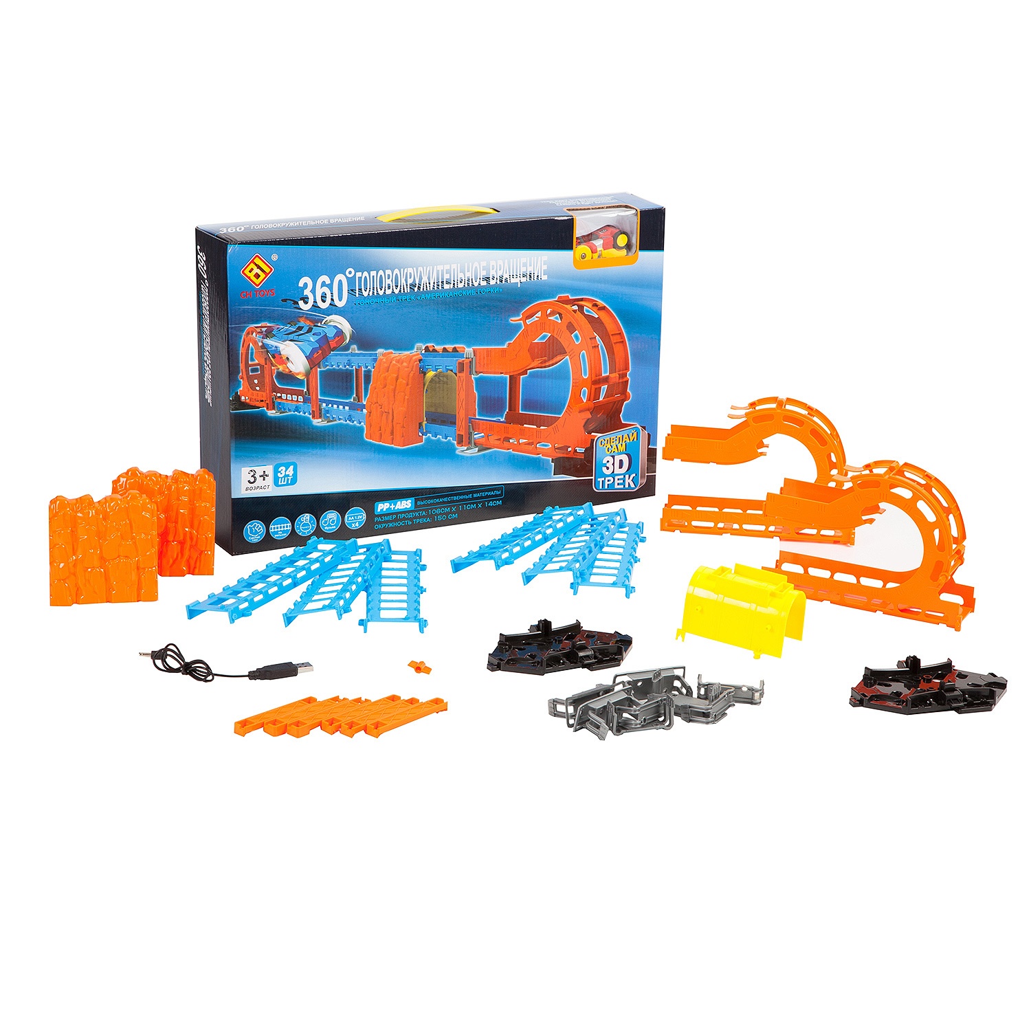 Купить Автотрек 360 Головокружительное вращение, со светом и музык,34 дет. в интернет-магазине Умно-Разумно