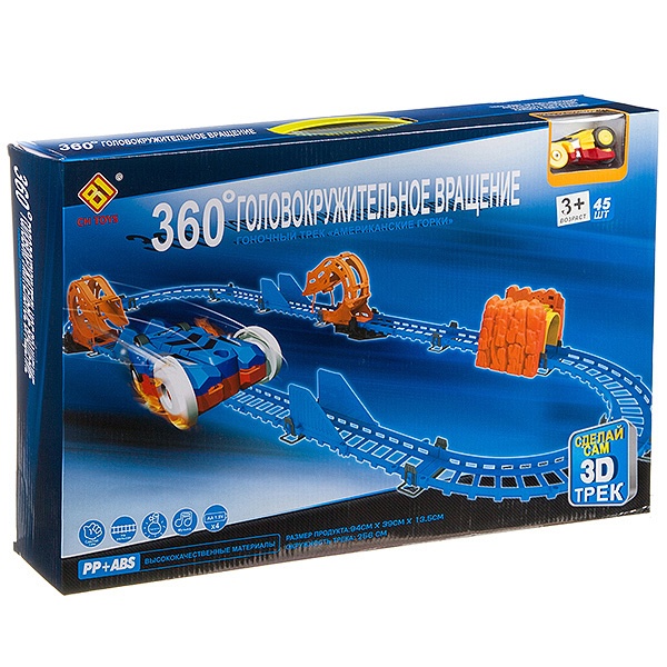 3+.Игрушечный автотрек, позволит создать полноценную гоночную трассу мечты в домашних условиях. Машинки -любимые игрушки мальчишек, а если они еще и в комплекте с треком, то это двойное удовольствие. Трек-конструктор будет увлекательным занятием для любого ребенка. Собери игру и запускай гонки. Играя, ребята будут совершенствовать ловкость ручек и координацию движений, а также мышление, внимание и логику. Автотрасса наверняка заинтересует не только ребенка, но и родителей и станет отличным поводом для совместных семейных игр.