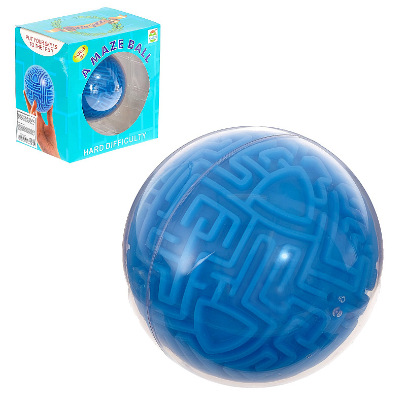 4+.Объемный лабиринт на поверхности шара. Самый сложный вариант из существующих сферических лабиринтов такого типа. Тут много маленьких дорожек и лишь 1 ведет к победе! Цвет игрового поля - синий. Внутри шара расположен круглый лабиринт дорожек. Нужно провести металлический шарик от старта к финишу, через все развилки, тупики и обманки. Манипулировать шариком технически несложно - суть и механика игры понятны интуитивно. Сколько понадобится попыток для того чтобы, наконец, довести шарик до конца, неизвестно. Но зато известно, что от самого процесса игры каждый игрок получит огромное удовольствие! Диаметр игрушки: 10см.