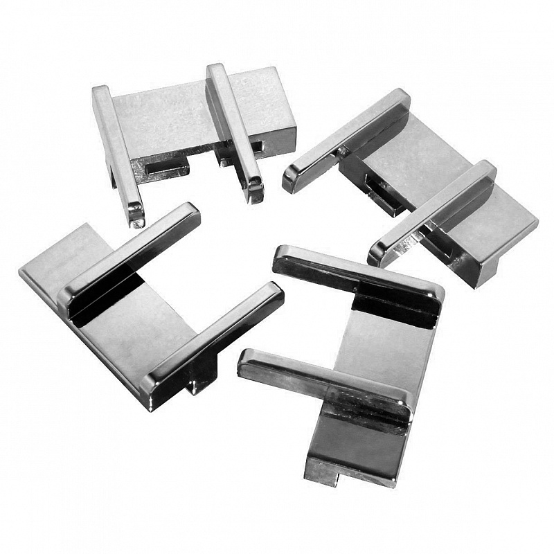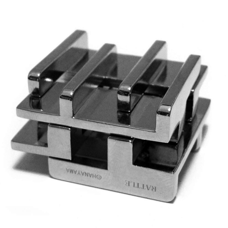 8+.Четыре элемента одинаковой формы достаточно свободно сцеплены между собой. Элементы головоломки едва держатся друг за друга и кажется, что можно очень легко ее разобрать. Однако разгадать тайну головоломки не так-то просто, а внешний вид не дает ни малейшего намека на решение. Задание: необходимо разделить головоломку на 4 части и затем снова ее собрать. Размер головоломки: 4х3,8х2,6см