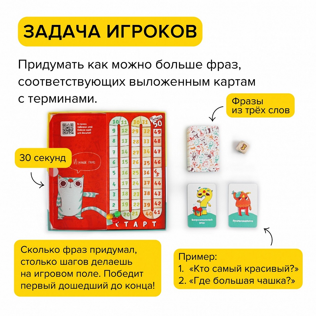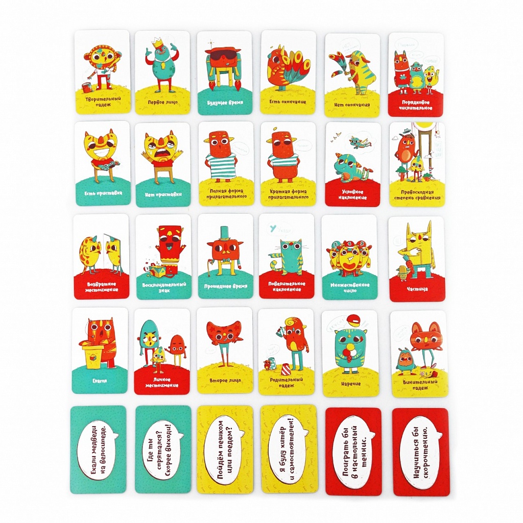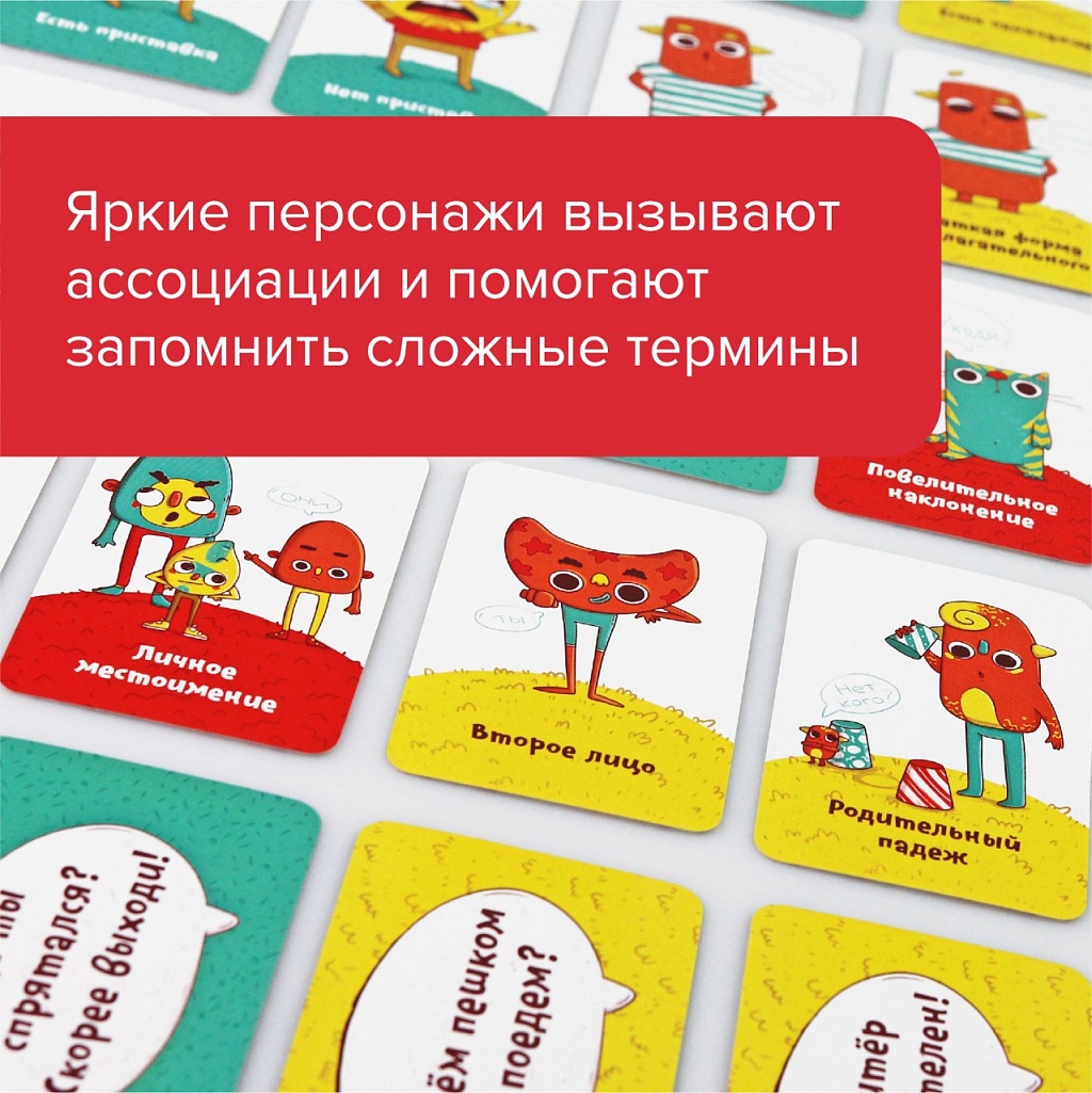 7+.Русский язык учить тяжело. Это неудивительно: столько разных правил, скучные учебники! «Ихний Ихниевич» — это уникальная настольная игра, которая помогает понять и запомнить самые важные термины из курса русского языка с 1 по 6 классы. Ведь играть намного интереснее, чем читать очередной параграф. 7+ лет: знакомство с простыми понятиями. 10+ лет: изучение основных терминов. Для чего? Уникальная игра учит детей разбираться в терминах русского языка. Это вам не скучный параграф № 78 из учебника, а веселая и азартная настолка, в которой понадобятся знания и воображение! Как выиграть? Все просто — нужно придумать и назвать как можно больше фраз, соответствующих выложенным картам с терминами из курса русского языка с 1 по 6 класс. Побеждает самый проворный и сообразительный игрок, первым набравший 50 очков! В комплекте 81 карта с терминами 69 карт с примерами Кубик с количеством 5 игровых фишек Иллюстрированные правила Шпаргалка по русскому языку.