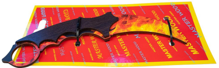 3+.Деревянный кинжал выполнен в современном стиле и имеет достаточно нетривиальный дизайн: лезвие украшает яркий рисунок, а само оружие изготовлено из высококачественного зашлифованного дерева. При этом, конструкция игрушки предполагает выполнение нехитрых трюков благодаря кольцу возле рукояти. Материал: дерево.