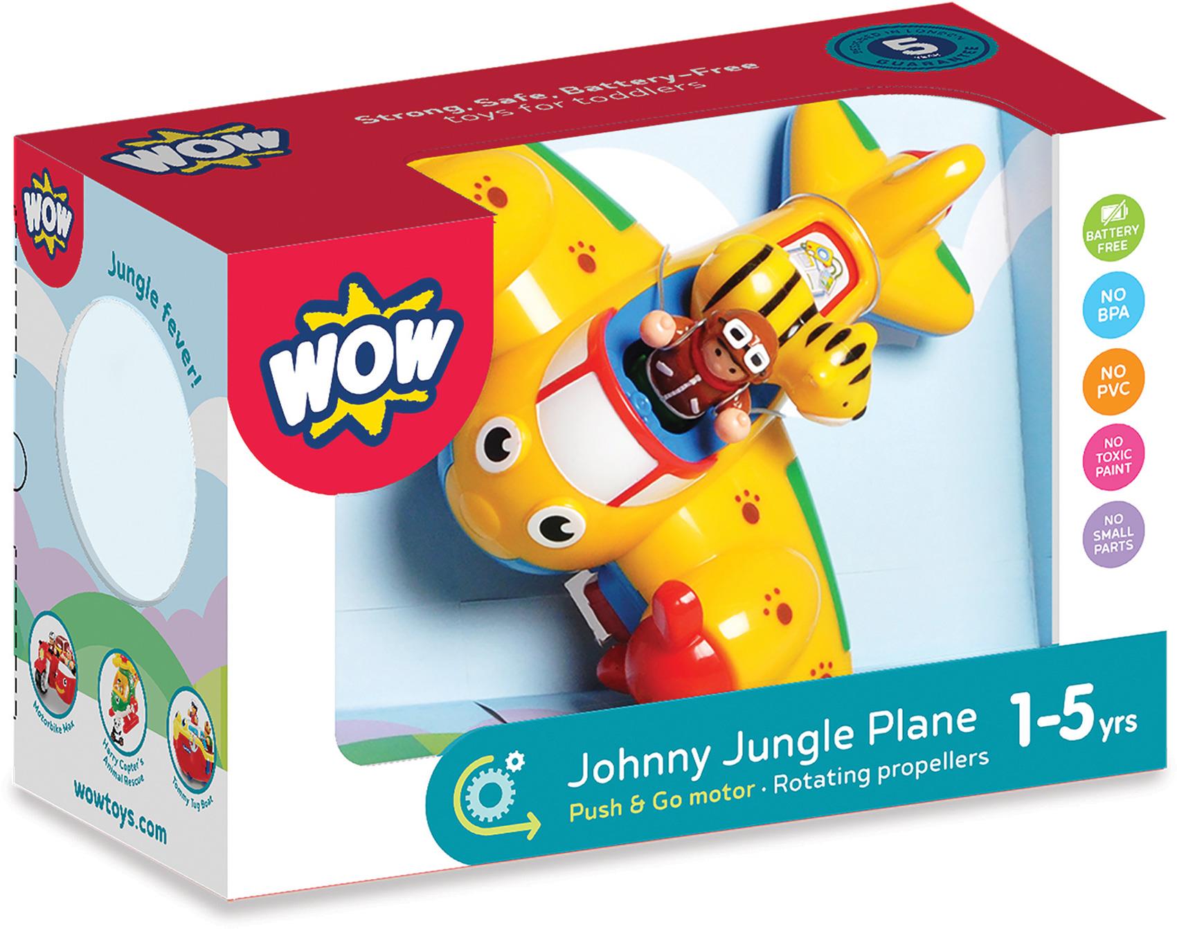 1+.Джонни - самолет с вращающимися пропеллерами. Его друзья пилот Монти и тигр Триша искатели приключений. В самолете есть три отсека для посадки тигра, пилота и еще один, где находятся карты, необходимые для путешествий. В набор входят: самолет, пилот, тигр. Игрушки WOW развивают моторику, стимулируют стремление к познанию новых форм и цветов, и самое главное - этим игрушкам не нужны батарейки.
