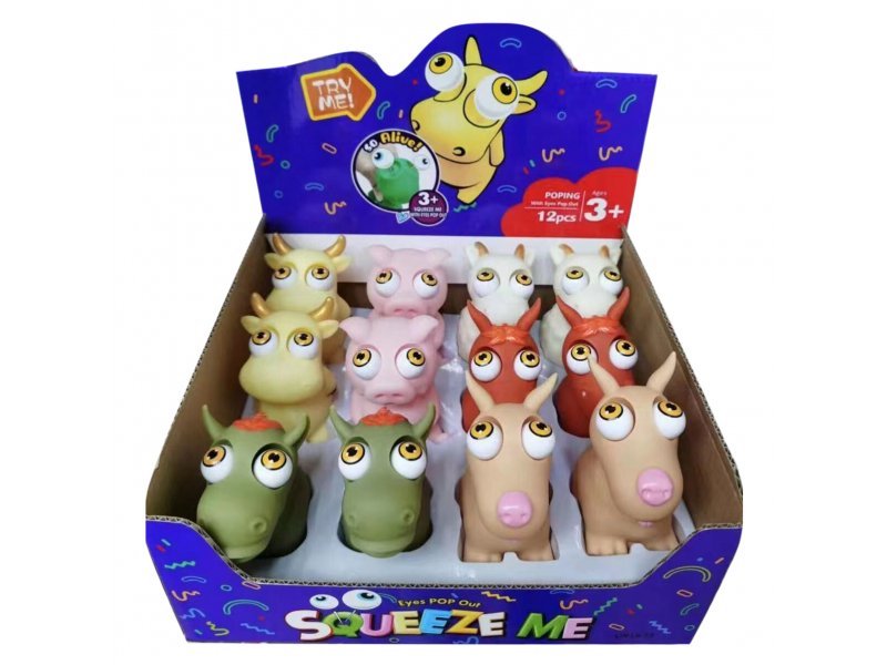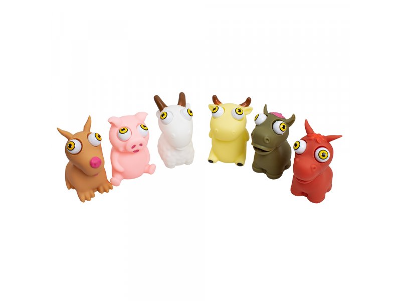 3+.Забавные зверята Пучеглазики - фигурки животных из ПВХ. При нажатии на фигурку выпучиваются глаза. В ассортименте: корова, динозавр, овечка, свинья, лошадь, собака. Размер игрушки составляет 8*8*10 см.