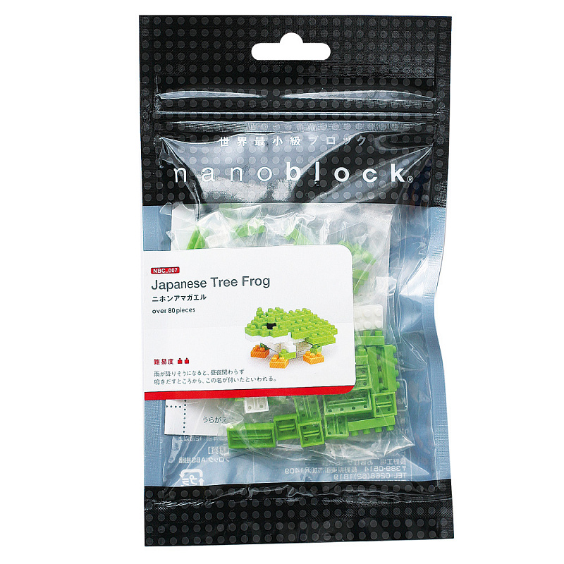 Мини-модель, прототипом которой послужила Японская или Дальневосточная квакша. Эту очаровательную лягушку из конструктора Наноблок можно смело завести даже в квартире! Такая лягушка живет в Японии, в Приморском крае России, в Корее и в Северном Китае. Японская квакша единственный азиатский представитель рода квакш. Максимальная длина тела до 52 мм. Сверху травянисто-зеленого, иногда глинистого или коричневого цвета, часто с темными пятнами. Снизу беловатого или желтого цвета. В дневное время квакши часто располагаются на траве или листьях растений в незатененных местах. Размер собранной модели: 5x4x3см Сложность: 2 из 5, начальная Примерное время сборки: 20-30мин В комплекте: 80 деталей + запасные, графическая схема сборки, зеленая площадка-основание 4х4см.