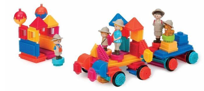 Оригинальный игольчатый конструктор Battat "Bristle Blocks" - тактильный детский конструктор, который позволит вашему ребенку проявить фантазию. Этот оригинальный конструктор от Battat — отличный помощник в развитии у ребенка тактильных навыков и ощущений. Неповторимый и яркий дизайн Bristle Blocks не оставит детей равнодушными. Любая игра с игольчатым конструктором затягивает и увлекает ребенка на 100%. Использование игрушки максимально безопасно и не причинит вреда здоровью ребенка. Помимо мелкой моторики, игры с конструктором Бристл Блокс развивают внимание, память и логическое мышление. Непременно стоит купить игольчатый конструктор Bristle Blocks на 85 деталей, чтобы ребенок смогу почувствовать себя настоящим архитектором! Большое количество деталей в комплекте позволят малышу погрузиться в творческий процесс с головой. Как это работает? Конструктор состоит из блоков разной формы, размера и цветов. Каждый из них имеет специальные щетинки и очень приятны на ощупь. Все элементы скрепляются без особых усилий. Из игольчатого конструктора в чемоданчике можно смастерить практически любое сооружение, а если заказать два набора Bristle Blocks, то возможности становятся поистине безграничными! В одном чемоданчике: - 72 блока, - 8 колес, - 5 фигурок (4 человечка + собака), - пластиковый контейнер с крышкой, удобный для хранения. Рекомендовано для детей старше 2 лет.