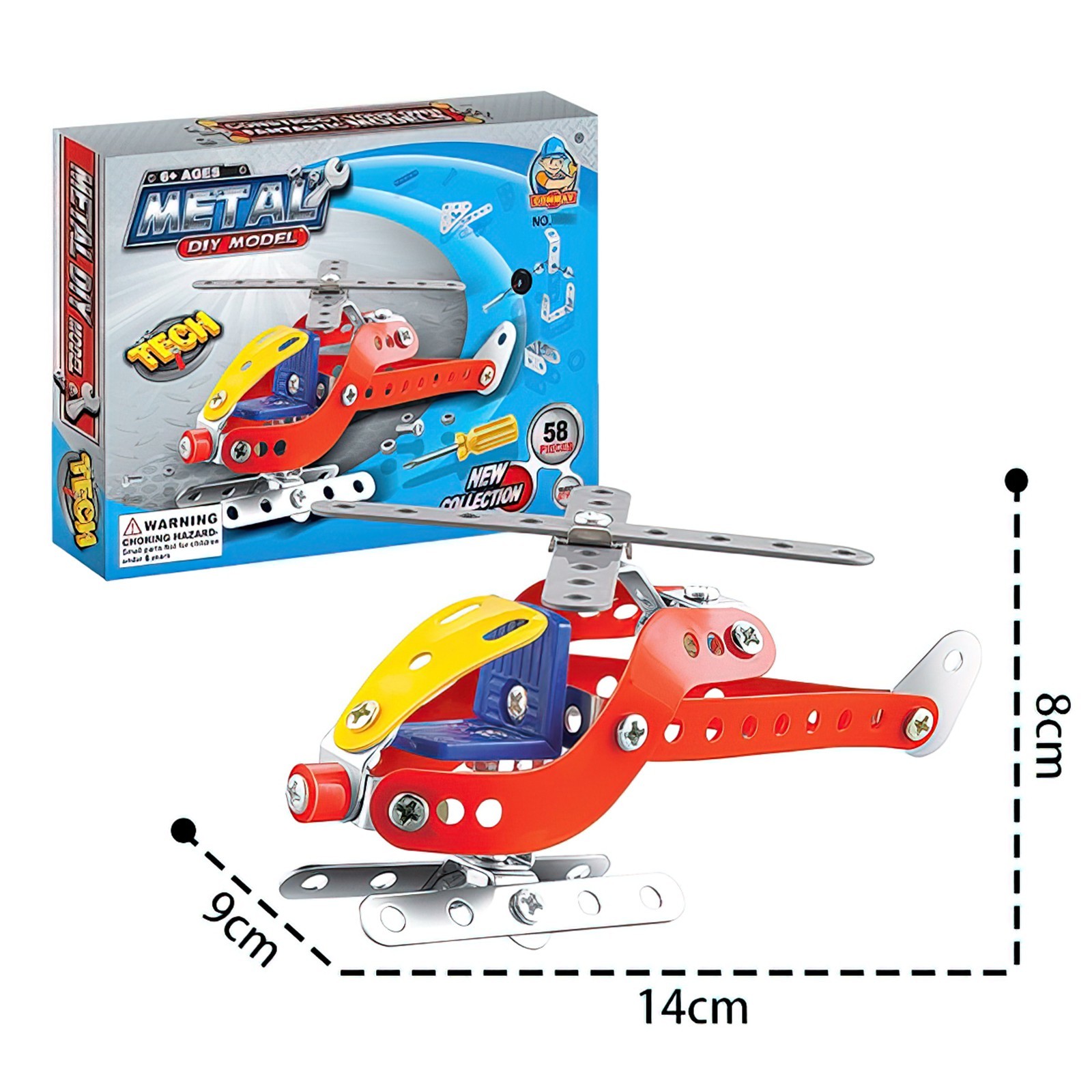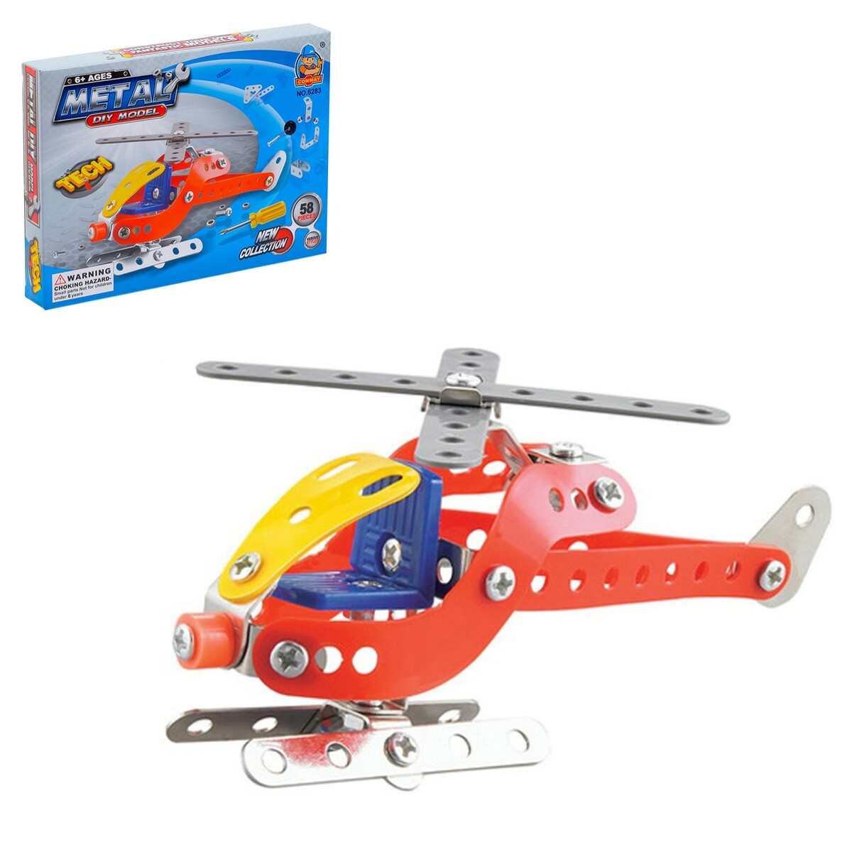 Конструктор металлический Вертолет, 58 деталей