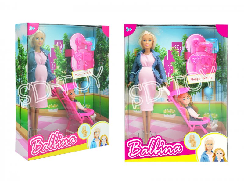 Игрушка предназначена для сюжетно-ролевых игр, способствует развитию воображения, познавательного мышления и моторики. Замечательная куколка станет отличной подружкой для вашей малышки. Девочка может играть с ней дома, представляя, будто это ее маленькая дочка. Тем самым девочка будет окружать ее заботой и вниманием. Игра с куклами способствует развитию логического и образного мышления, тренирует мелкую моторику рук и координацию движений, способствует адаптации ребенка в социуме Кукла высотой 30 см. В состав набора входит: беременная кукла с сумочкой, кукла-дочка в коляске, воздушный шарик, 5 аксессуаров (расческа, зеркальце, фен, гребешок, духи).