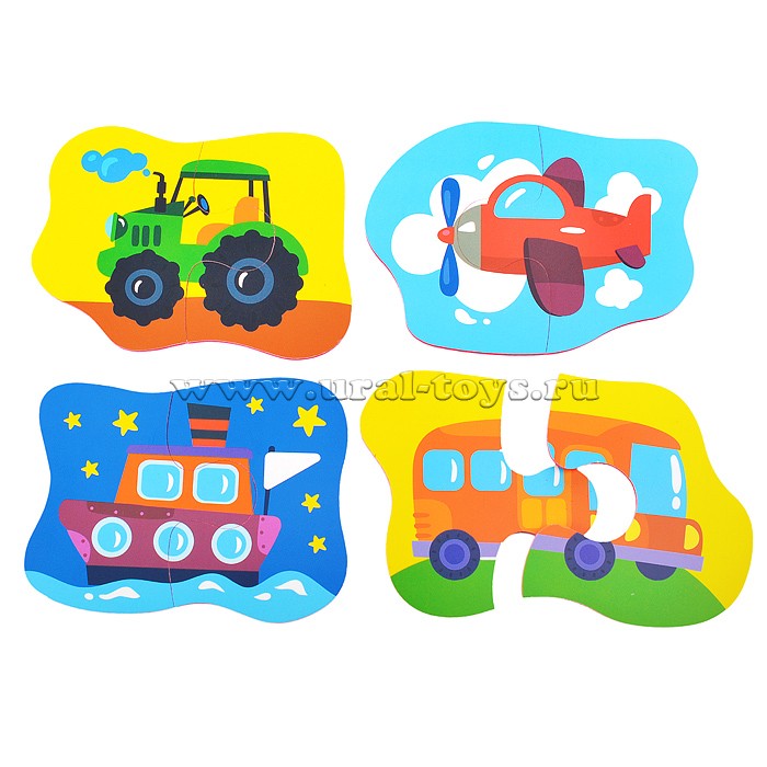 Мягкие пазлы подойдут для самых маленьких.В наборе представлены 4 изображения, которые разделяются на 2 части, поэтому проблем со сборкой картинки у малыша не возникнет.Во время игры малыш сможет познакомиться с некоторыми животными и цветами.Также пазлы способствуют развитию логики, внимания и мелкой моторики.С такой игрушкой ваш малыш точно не соскучится! Материал EVA 4 мм