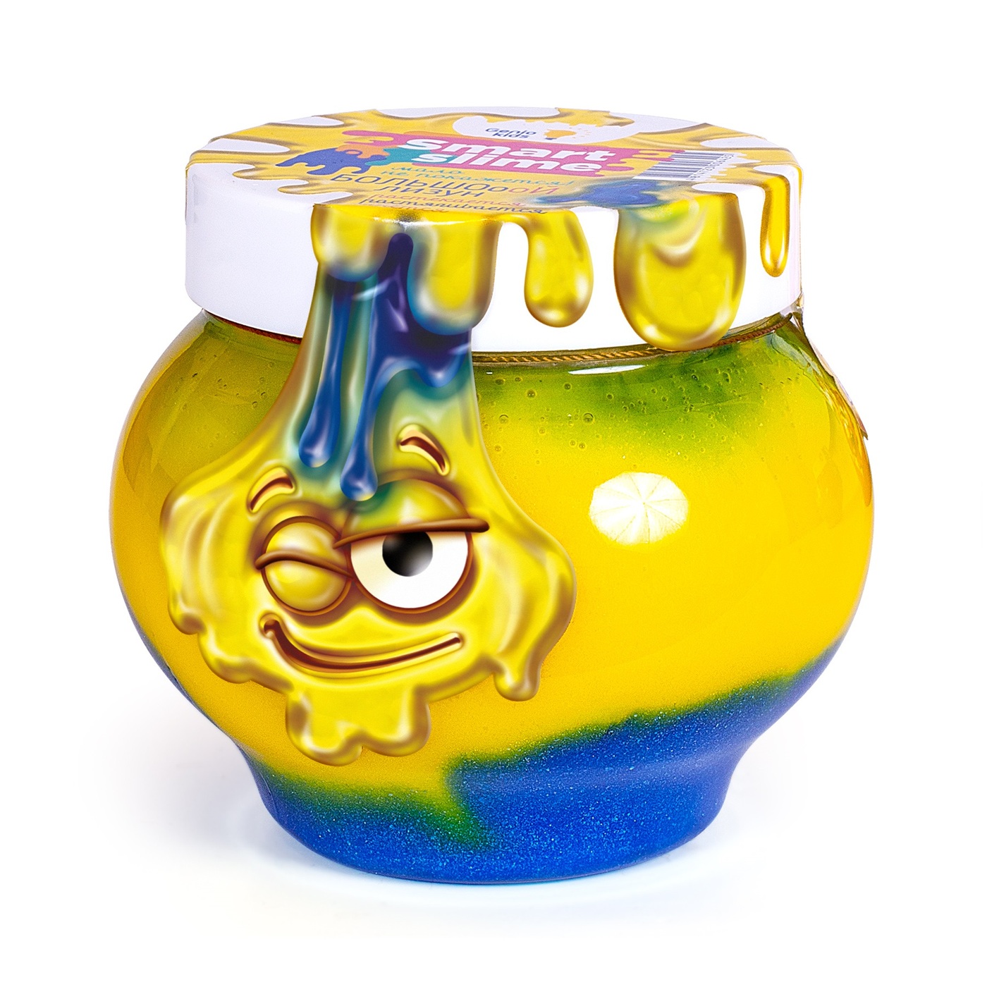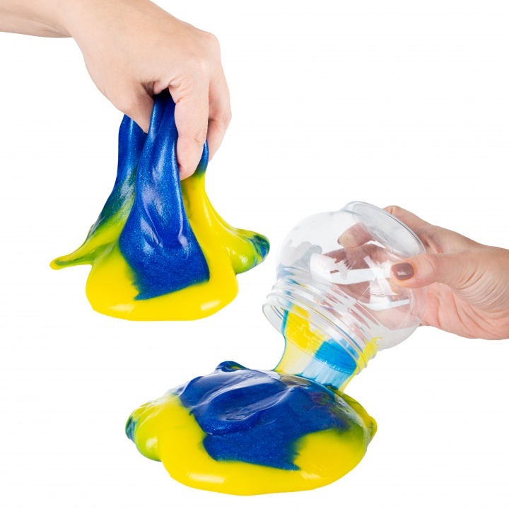 Лизун - желеобразное вещество с необычными свойствами: мнется, растягивается, растекается. Микс двух цветов: синий с желтым. Номинальный объем: 500 г. Состав слайма: гуаровая камедь, глицерин, консервант, краситель, тетраборат натрия, пигмент органический перламутровый.