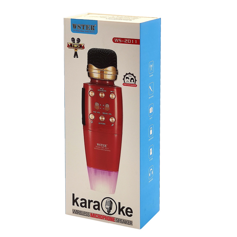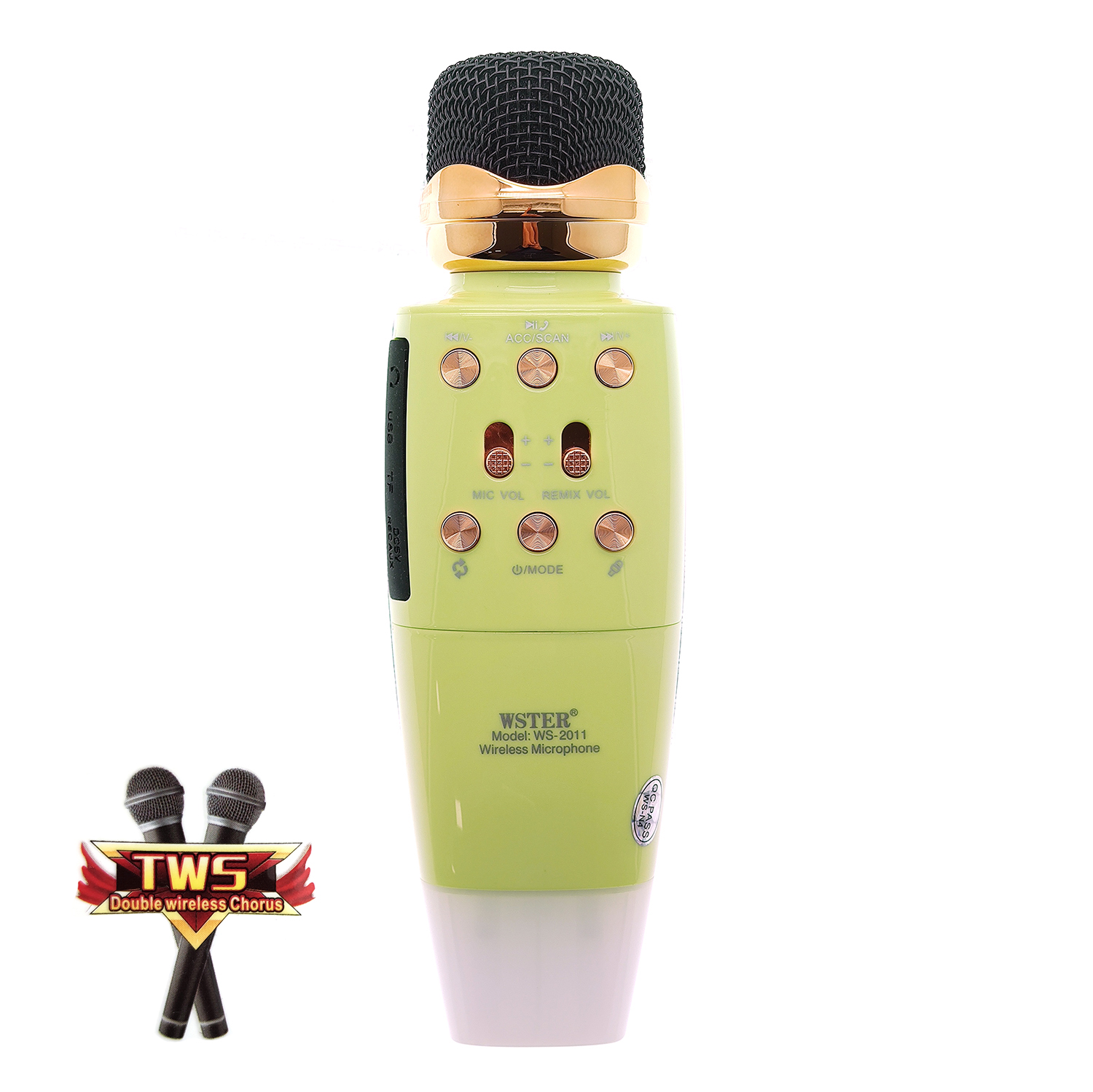 Купить Микрофон для караоке c беспроводной колонкой WS-2011 (Bluetooth, microSD, USB) зеленый в интернет-магазине Умно-Разумно