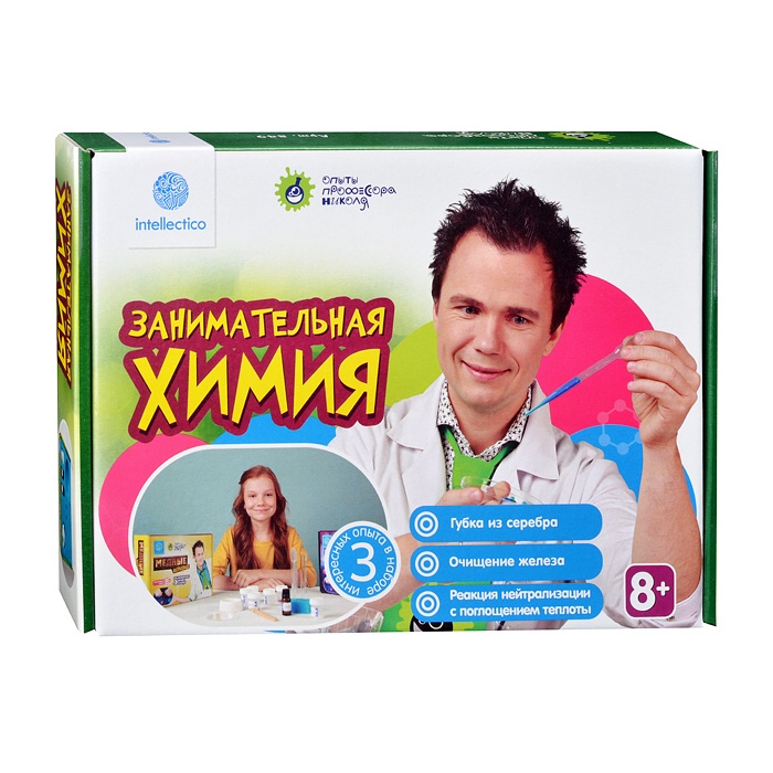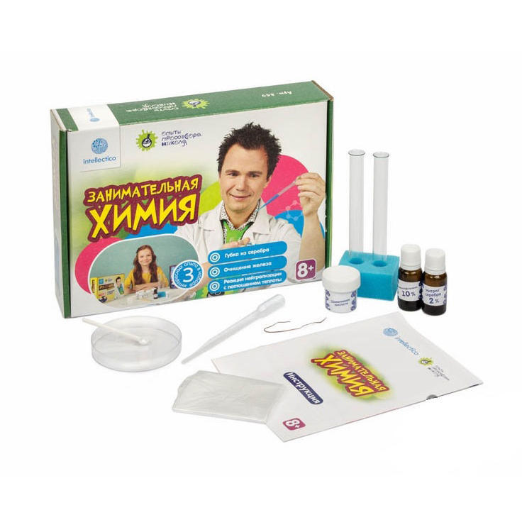 Юный пытливый ум всегда стремится познать окружающий его мир и процессы, в нем происходящие. С набором "Занимательная химия" можно провести целых 3 опыта и досконально, на практике, понять азы химической науки. 3 эксперимента, приоткрывающих завесу тайн химии: губка из серебра, очищение железа и реакция нейтрализации с поглощением теплоты. В чем преимущество набора? В том, что ребенок постигает понятия естественных наук в доступной форме, в процессе взаимодействия игрового характера. При помощи опытов тренируется ум, развиваются логическое и критическое типы мышления. Можно быть уверенным, что ребенок в дальнейшем будет совершенно искренне интересоваться наукой. Возраст: от 8 лет Для мальчиков и девочек Из чего сделана игрушка (состав): пластик, реактивы. Размер упаковки: 19.5 х 6 х 17 см. Упаковка: картонная коробка. Комплект: пипетка Пастера, чашка Петри, мерная ложка, подставка для пробирок, пробирка, щавелевая кислота, нитрат серебра (2%), фенолфталеин (10%), инструкция.