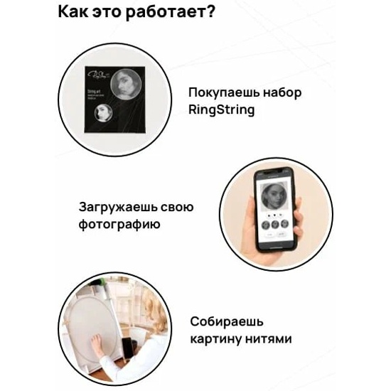 14+.RingString – это ваш портрет нитями, который вы создаете своими руками! Загрузите вашу фотографию на сайте, и соберите свою уникальную картину с помощью голосового помощника и его подробных инструкций. Высокое качество продукта, расслабляющий процесс сборки и потрясающий результат, который будет радовать вас и удивлять ваших гостей!