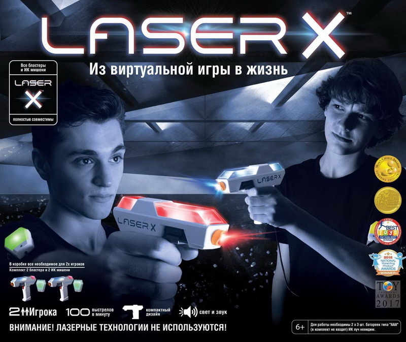 6+.Новая инновационная игра LazerX, со световыми и звуковыми эффектами в варианте Микро. 3 варианта игры.В комплекте с бластером мишень-приемник, которая для удобства крепится на предплечьи. Пытайтесь попасть лучом бластера в мишень.Бластеры могут поражать мишень противника на расстоянии до 60 метров.