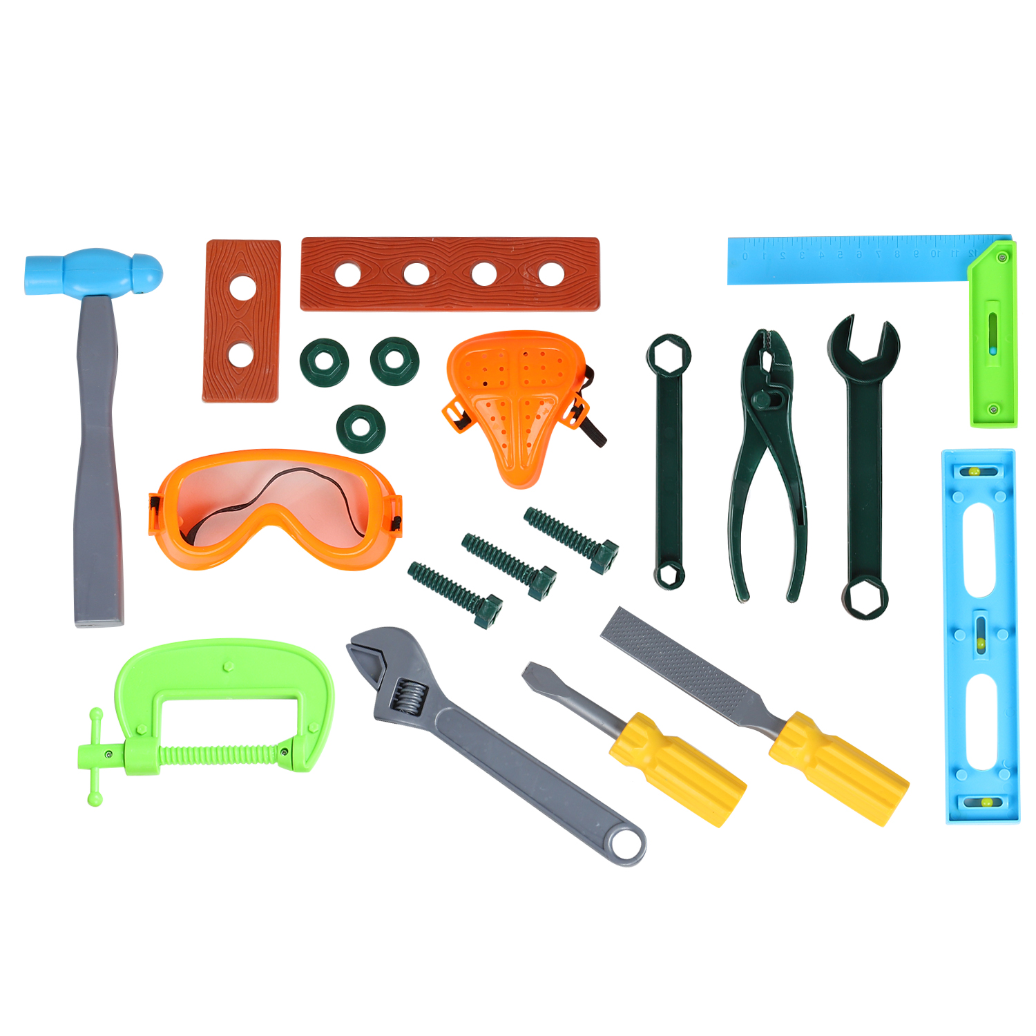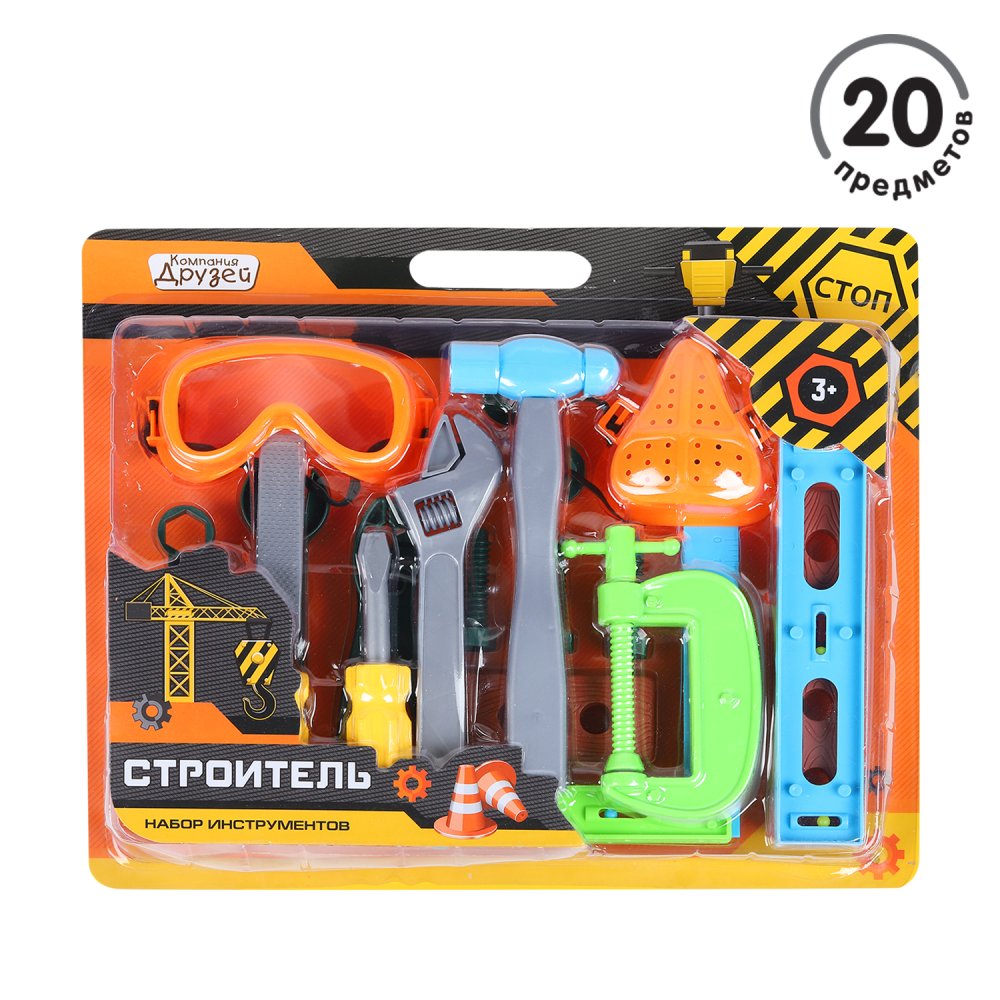 3+.С этим набором юный строитель попробует себя в роли настоящего мастера: в процессе игры будет учиться закручивать гайки и забивать гвозди, мастерить и чинить. Набор инструментов поможет развитию мелкой моторики, а также мышления и самостоятельности. Игра в строителя сформирует у ребенка любовь к труду и работе руками.