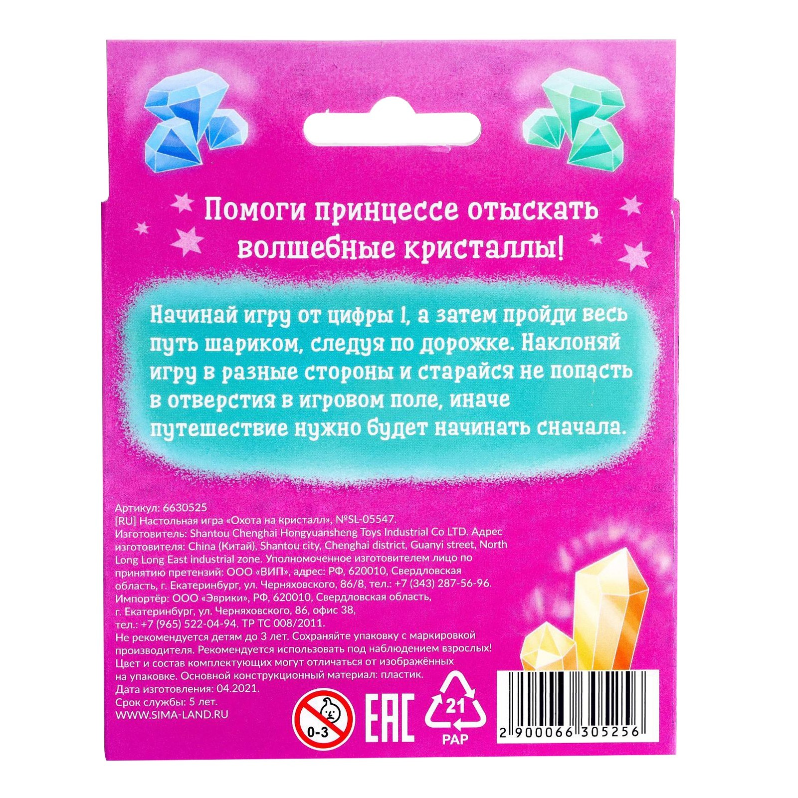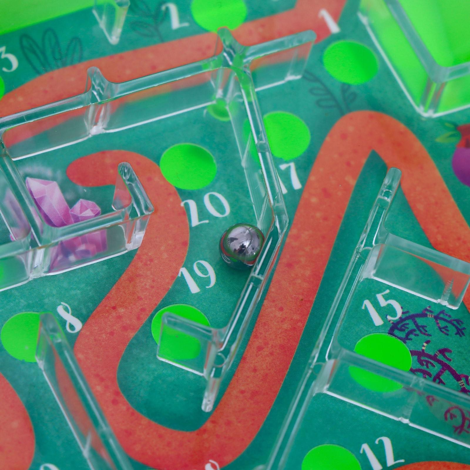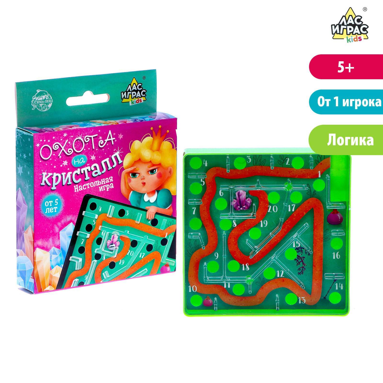 Занимательная игра-головоломка «Охота на кристалл» представляет собой игровое поле, шарик и множество лунок-отверстий с извилистыми дорожками. Ваша задача — пройти шариком весь лабиринт, следуя стрелке с цифрами. Будьте внимательны! На поле расположено множество лунок, которые желают захватить ваш шарик. Наклоняйте игру в разные стороны, чтобы шарик докатился до финиша. Иначе вам придётся начать свой путь заново!Настольная игра рекомендована детям старше 5 лет и рассчитана на 1 игрока. Вы можете по очереди устраивать соревнования, кто быстрее дойдёт до финиша. Игра развивает моторику, скорость мышления, реакцию, координацию и заряжает спортивным духом!