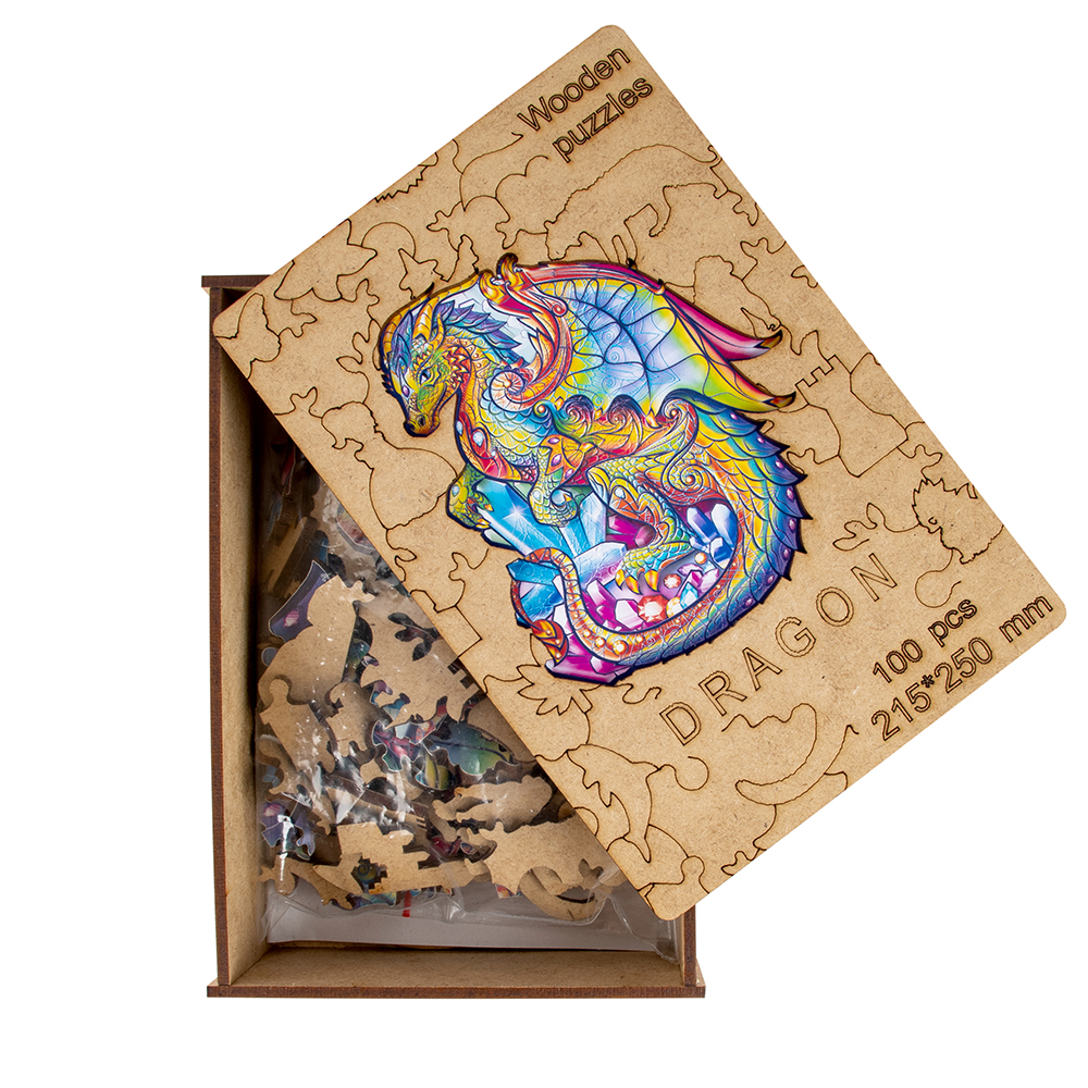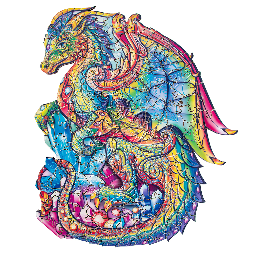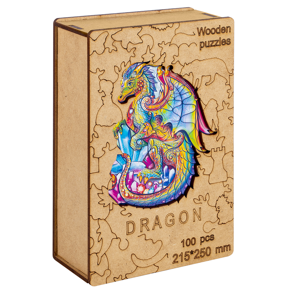 3+.Деревянный фигурный пазл "Дракон" - это развивающая головоломка для детей и взрослых. Он станет необычным подарком, который увлечет всю семью. Каждый элемент это интересная мини история с неповторимой формой. Среди деталей можно встретить различных животных. Их интересно рассматривать и приятно держать в руках. Сборка пазла тренирует фантазию, моторику, пространственное мышление и станет увлекательным досугом для всей семьи. Качественная печать и применение высокоточного лазера в производстве позволили нам сделать детали, которые радуют глаз яркой картинкой и идеально подходят друг к другу. Сделаны полностью из экологичных материалов.