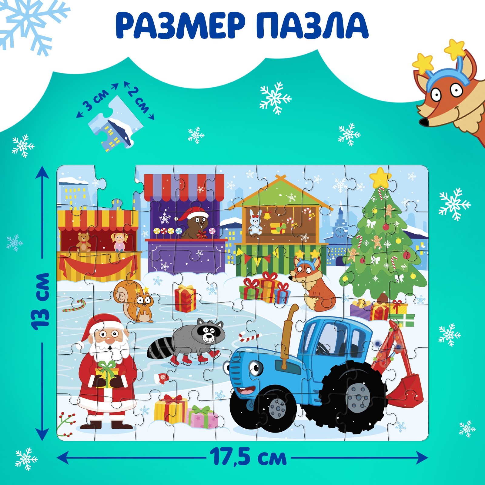 Пазл на подложке Новогодние развлечения Синего трактора, 35 деталей