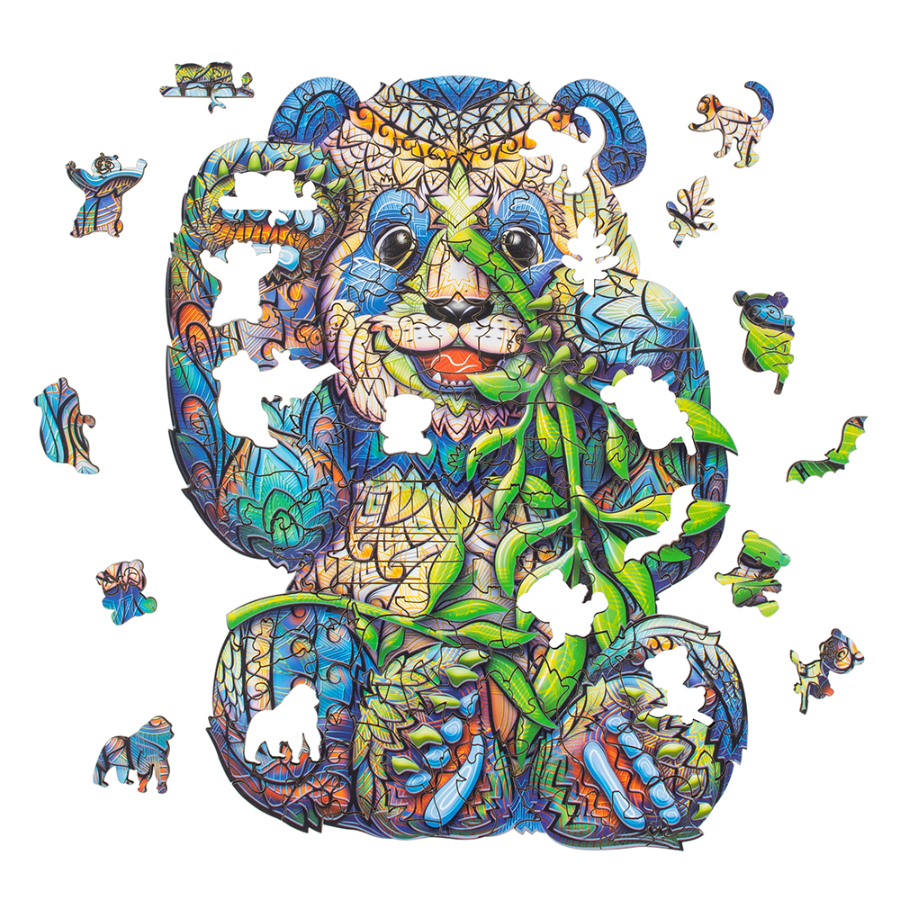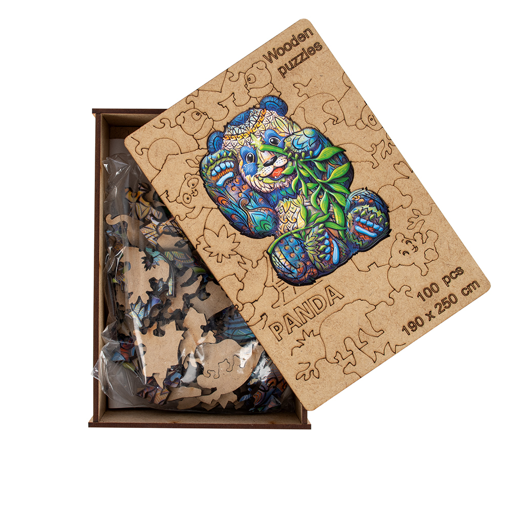 6+.Деревянный фигурный пазл Панда — это развивающая головоломка для детей и взрослых. Он станет необычным подарком, который увлечет всю семью. Каждый элемент — это интересная мини-история с неповторимой формой. Среди деталей можно встретить различных животных. Их интересно рассматривать и приятно держать в руках. Сборка пазла тренирует фантазию, моторику, пространственное мышление и станет увлекательным досугом для всей семьи. Качественная печать и применение высокоточного лазера в производстве позволили нам сделать детали, которые радуют глаз яркой картинкой и идеально подходят друг к другу. Сделаны полностью из экологичных материалов. В комплекте 100 деталей