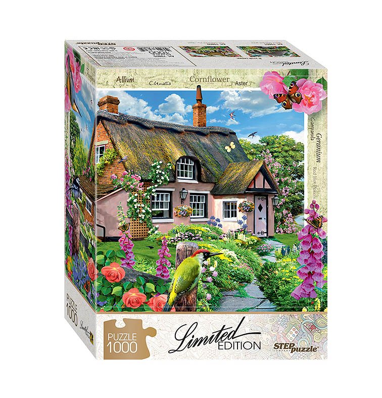 Пазл «Розовый коттедж» серии Limited Edition состоит из 1000 элементов. На фото представлен красивый дом в окружении уютного сада. Ярко светит солнце, поют птицы, вкусно пахнут цветы. Наверное, тут живёт добрая волшебница из сказки? Пазл необычен тем, что все детали в нём уникальны по форме. Для каждой — строго своё место на общей картине. Пазл подойдёт для ценителей простой красоты и для настоящих мечтателей. Изготовлен из экологически чистых, нетоксичных материалов, отличается ярким и чётким изображением, высокой точностью подгонки деталей. Упакован в жёсткую стильную коробку.
