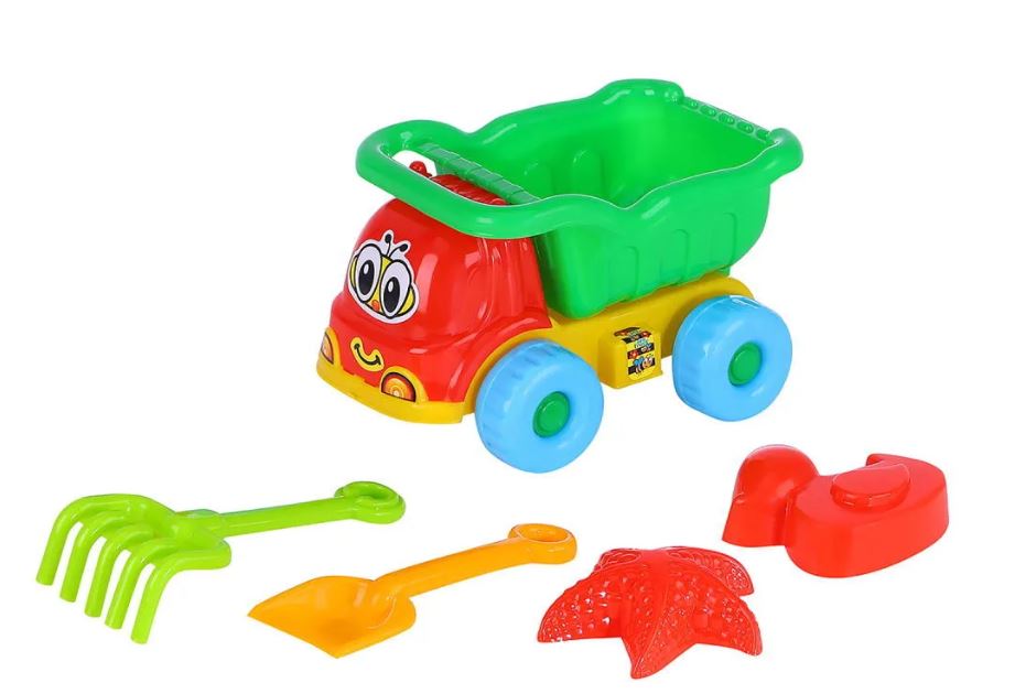 Набор для песочницы с грузовиком торговой марки "Компания Друзей" - отличная развивающая игрушка, которая обязательно понравится малышу. Игра с песком развивает воображение, моторику рук, логическое и пространственное мышление, благотворно влияет на общее развитие. • Игровой набор включает в себя несколько предметов: машинка-грузовик, формочки для песка, лопатка, грабли. • Реалистичный дизайн и привлекательная расцветка грузовика не оставят равнодушным никого вокруг. • В кабину можно посадить игрушечного водителя, придумывая новые игровые сюжеты. • У машинки крепкий корпус и подвижные элементы, кузов поднимается и опускается, в нем можно перевозить песок или мелкие предметы. • Большие устойчивые пластиковые колеса надежно закреплены и позволяют катать машинку практически по любой поверхности. • Игрушки для песочницы имеют удобные размеры, ими комфортно играть даже самым маленьким. • Элементы набора не имеют острых краев и мелких деталей, изготовлены из качественной пластмассы, не содержащей вредных вещ