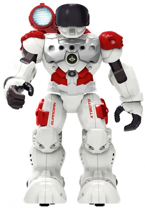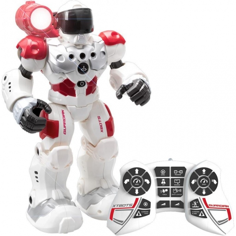 Робот знакомит с основами программирования: после нажатия кнопки Program на пульте можно запрограммировать до 50 функций (ходьба, поворот, танец и т.д.). После повторного нажатия на кнопку робот воспроизведет введенную программу действий. У робота есть следующие функции: Smart control – управление рукой: вслед за движением руки робот движется вперед или назад, поворачивает вправо или влево. Spy - позволяет сканировать пространство вокруг и записывать звуки, а потом воспроизводить их. Или можно записать секретное сообщение длительностью до 30 секунд, а потом передать или воспроизвести его. Guardian – режим защитника, который активирует сигнал тревоги и воспроизводит предварительно записанное сообщение. Torch - Встроенный фонарик. Робот имеет встроенный Li-Po аккумулятор 1*3,7V 600mAh (разъем для зарядки расположен на спине робота). Управляется с помощью ИК пульта (для игры необходимы 2*1,5V AA батарейки). Время работы от аккумулятора - 3 часа. Дальность действия пульта до 5 м. В комплекте USB шнур для зарядки от компьютера, универсальной мобильной батареи, подходящего зарядного устройства. На передней панели робота расположены сенсоры для управления рукой, а также кнопка включения и ожидания (standby). Размер робота 31,5 см.