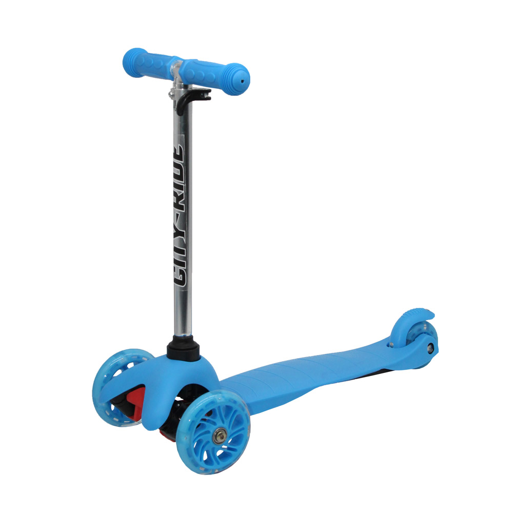 Трехколесный самокат City-Ride станет любимым средством передвижения для ребенка • Основа сделана из современных ударопрочных материалов: PP + нейлон • Легкий и прочный телескопический алюминиевый руль • Резиновая рукоятка на руле имеет специальные ограничители, которые предотвратят соскальзывание рук и сделают поездку более безопасной • Рулевая стойка наклоняется в нужную сторону, что позволяет уверенно держаться в поворотах, сохраняя равновесие • Переднее колесо PU диаметром 110 мм и заднее колесо диаметром 76 мм придают самокату хорошую устойчивость • Колеса со светодиодами особенно эффектно смотрятся в темное время суток • Надежный ножной тормоз позволит быстро затормозить перед препятствием • Самокат отличается маневренностью и легкостью в управлении благодаря наличию надежных подшипников Аbec-5 Размеры: 51х21,5х66 см Размеры основы: 51 х 11 см Максимальная нагрузка: 35кг Возраст: от 3 лет