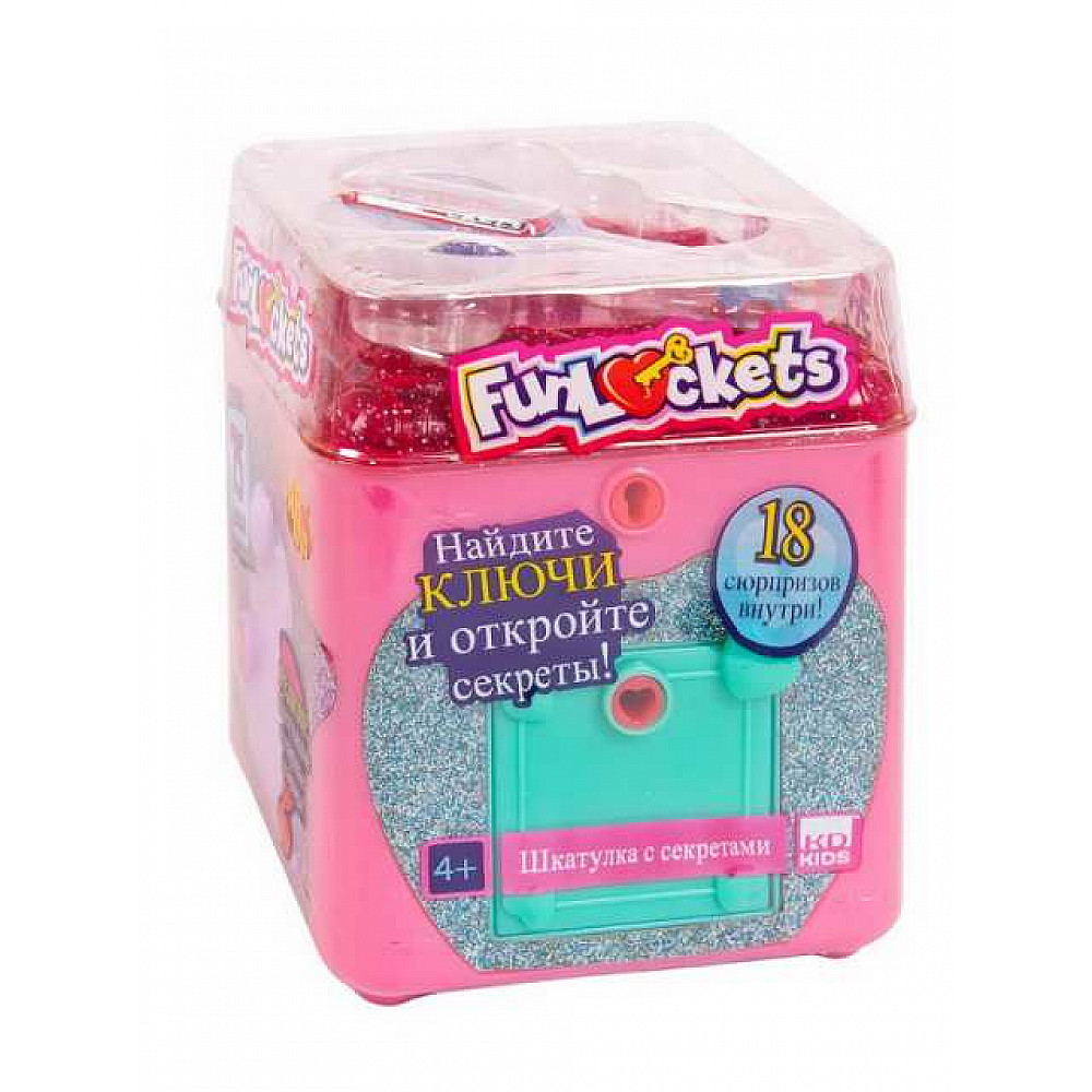 Шкатулка с секретами Funlockets. Яркая шкатулка-лабиринт не только развлечение, но и средство для развития ребенка. Внутри нее спрятаны специальные подвески, которые станут украшением для браслета или ожерелья. Один стартовый ключ, все остальные предметы набора спрятаны внутри. В каждом отделении есть свой «хитрый» механизм, скрывающий секрет. Подбирайте ключики к замкам один за другим, открывайте дверцы и находите секреты внутри! Также в шкатулке можно хранить различные небольшие предметы.